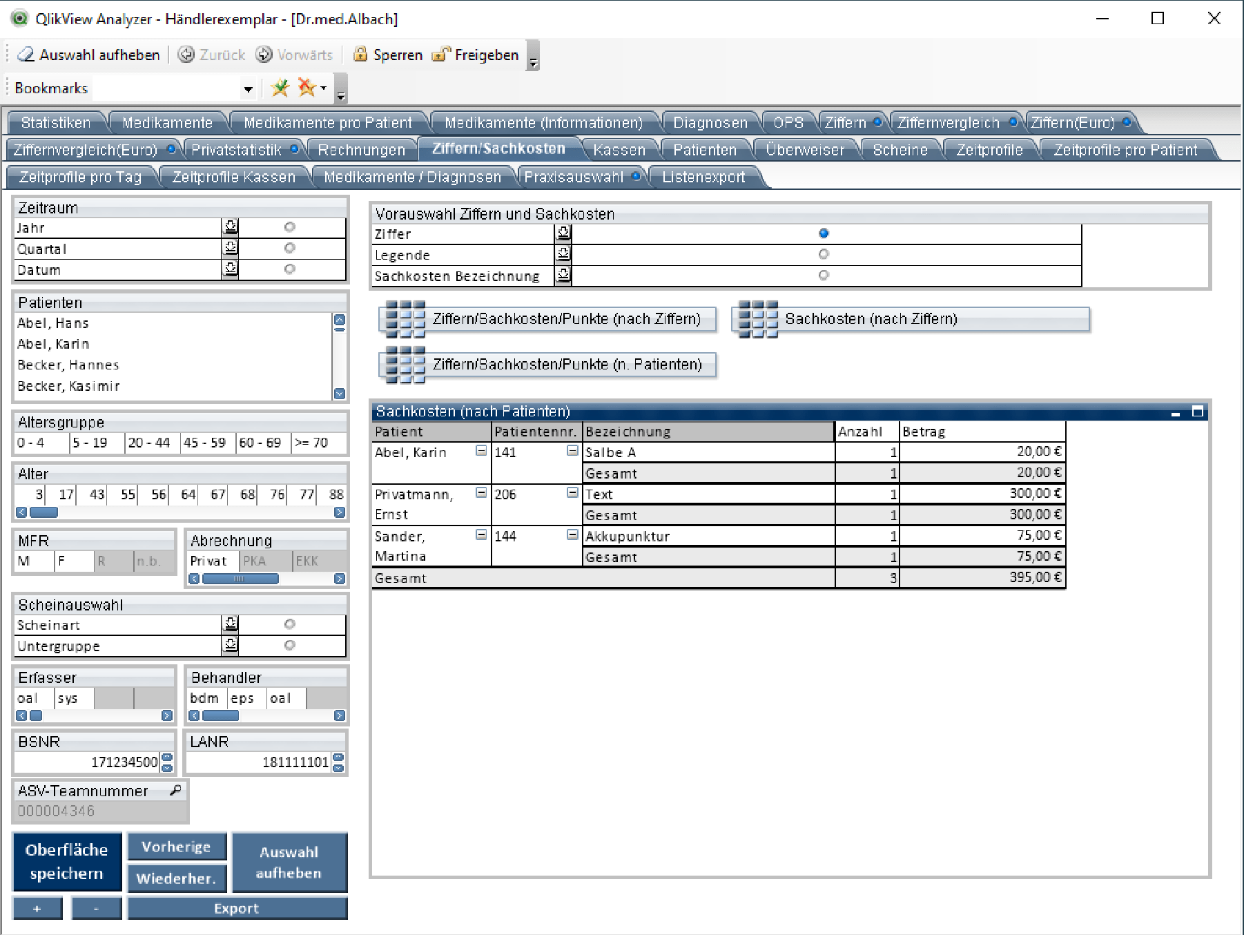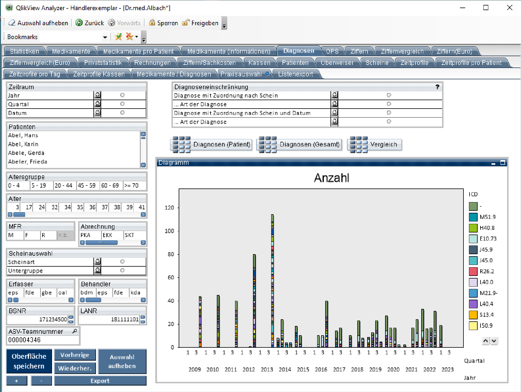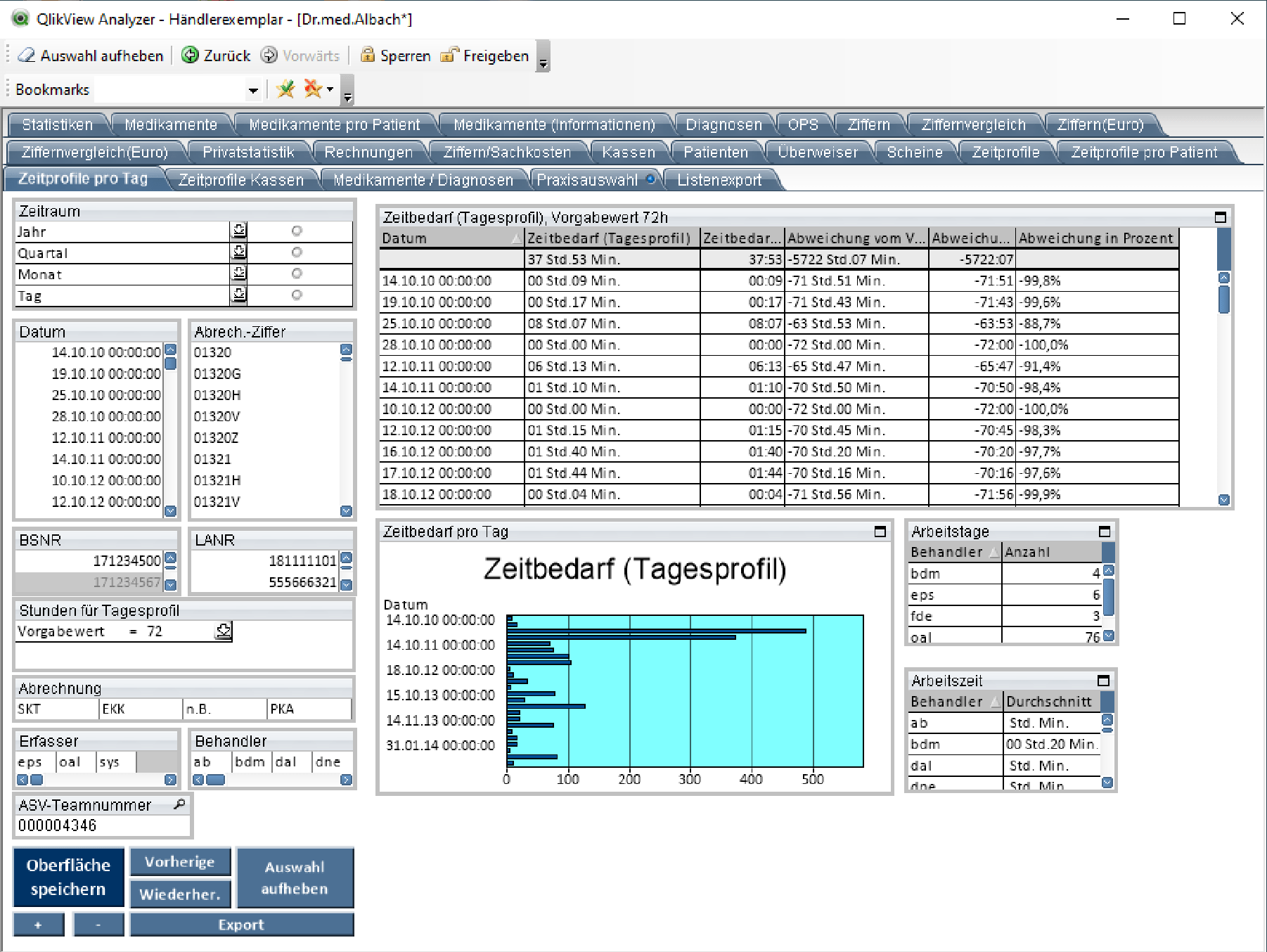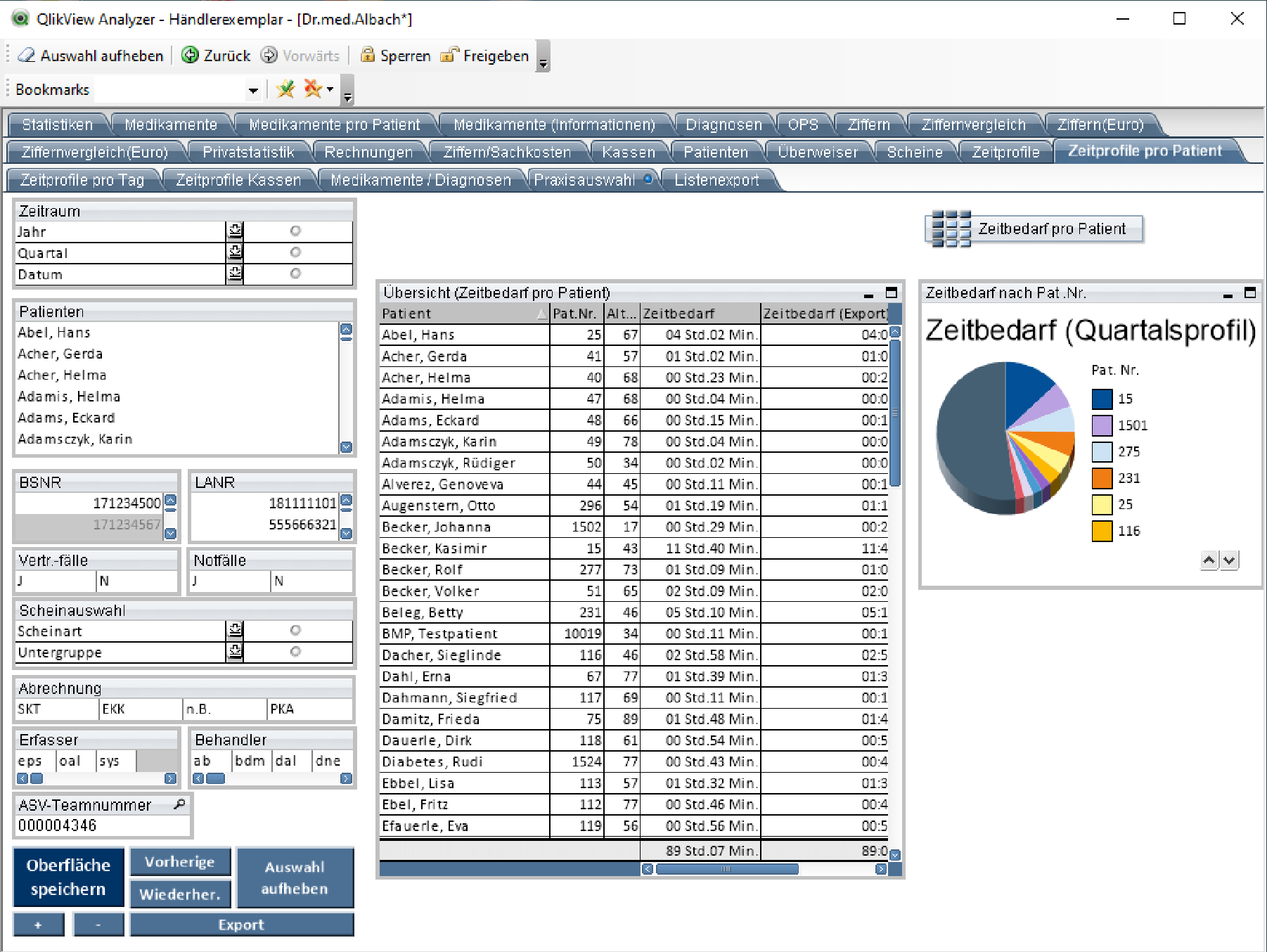 Mit dem Guided Analytics-Tool QlikView erhalten Sie einen schnellen Überblick über den kompletten Datenbestand in Ihrem Praxisverwaltungssystem. Sie können Informationen aus verschiedenen Quellen zusammenstellen und vergleichen. Mit der Analyse Ihrer Datenbank können Sie die Effizienz Ihrer Prozesse steigern und die Wirtschaftlichkeit nachhaltig verbessern.